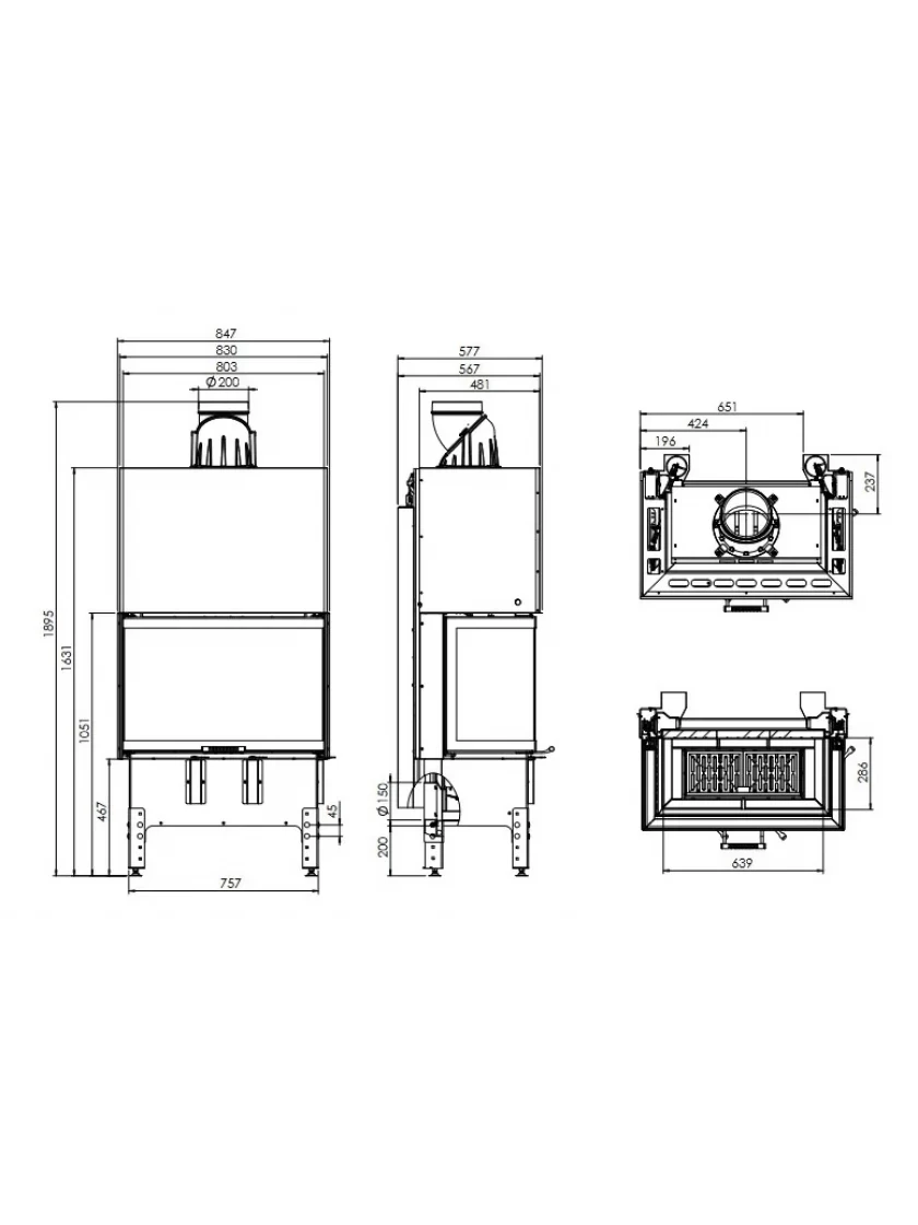 3. Для безпеки камери згоряння й уникнення деформації металу, камінна топка TRINITY TRI80X35X53 всередині обкладається бетонним шамотом.