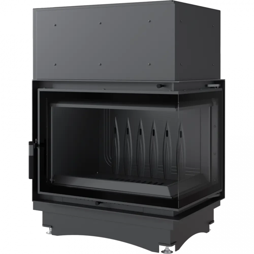 Сучасна передня сторона топки виготовлена зі сталі, має декоративну жароміцну кераміку, що витримує температуру до 660 °C. Вмонтоване скло має сертифікат якості та безпеки. Декоративна скляна панель типу glass не тільки має елегантний та сучасний вигляд, але й оптично збільшує передню сторону топки та підкреслює споглядання вогню. Рамка дверцят виготовлена із закритого профілю, що робить її надійною та стійкою до навантажень, які виникають під час роботи за високих температур.