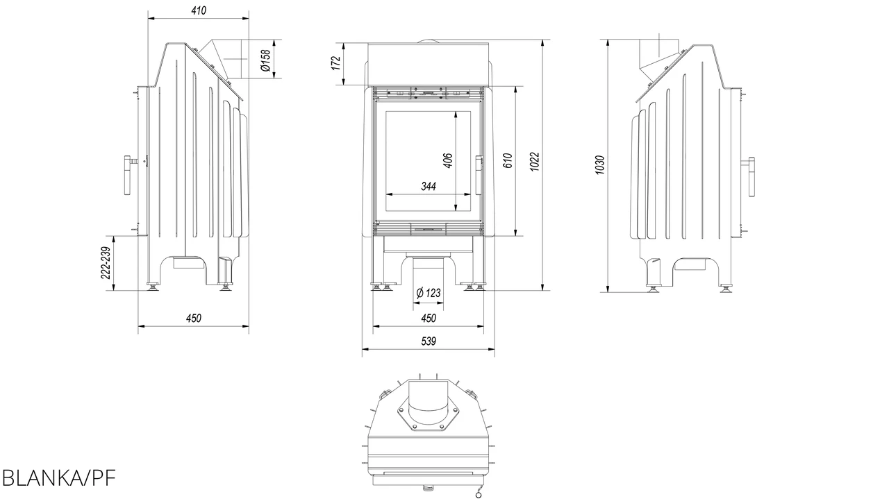 Можна застосовувати за різних монтажних умов завдяки регульованим ніжкам і рухомому димоходному отвору з регулюванням встановлення 360°.