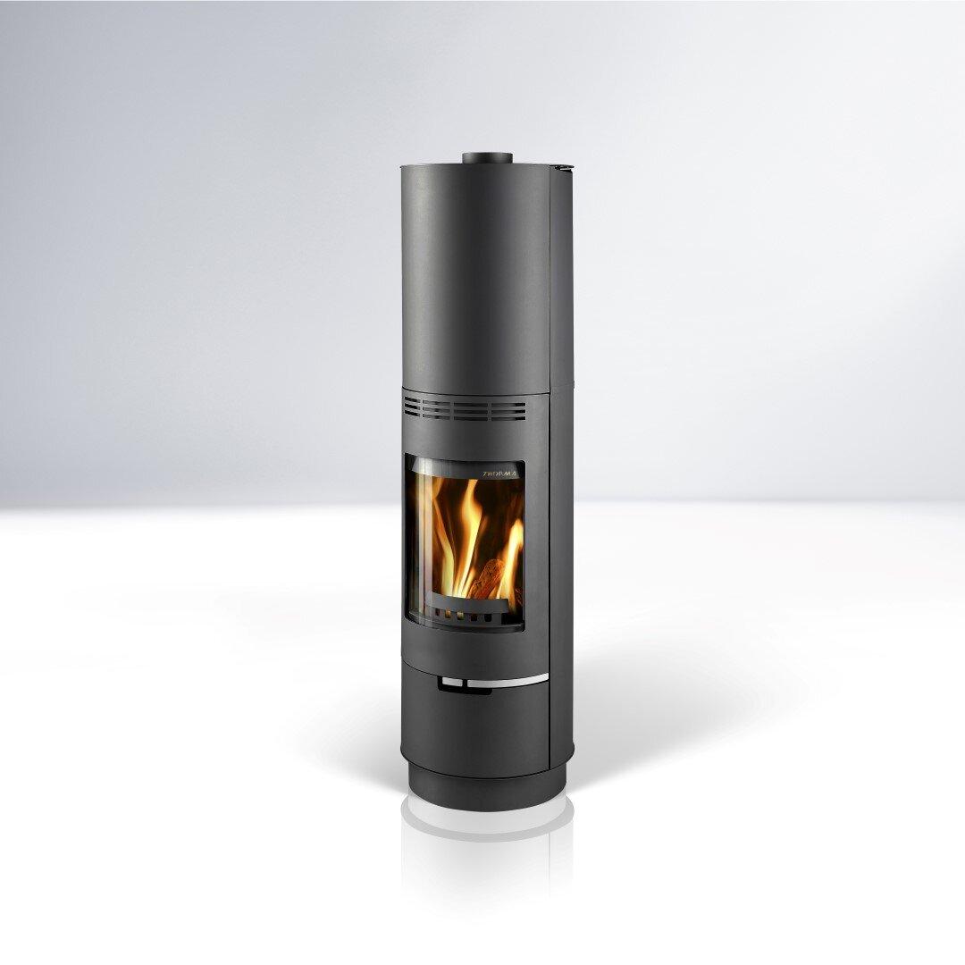 Піч-камін Thorma Sevilla Black є сучасною стильною циліндричною конструкцією із закругленим панорамним склом.