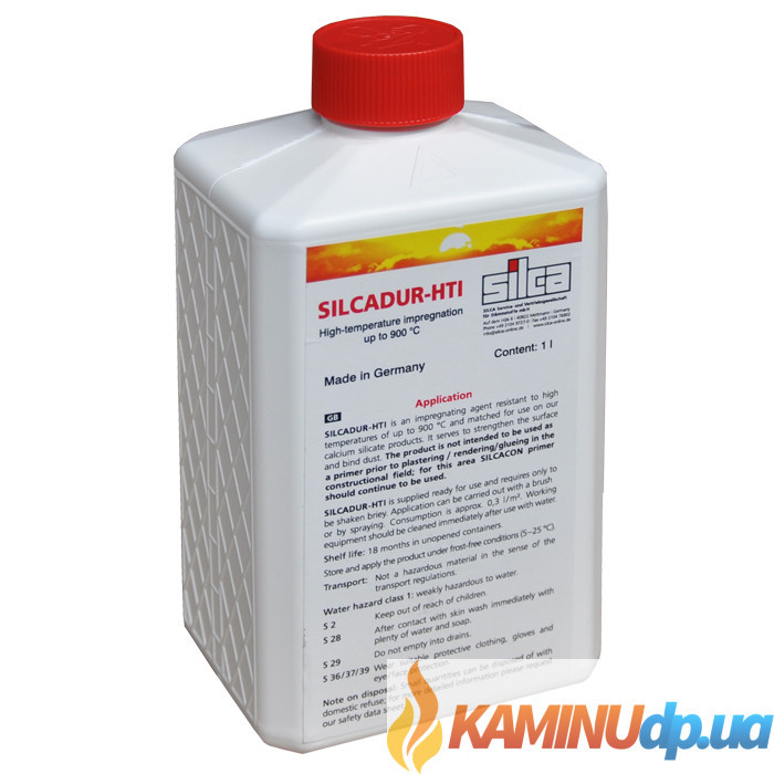 SILCADUR HTI Просочення — високотемпературний просочувальний склад, зміцнює поверхню плит силікату кальцію і зв’язує пил. Це неорганічна рідина без запаху, застосовується для додаткового оброблення поверхонь плит Silca всередині камінної облицювання. SILCADUR-HTI не призначений для ґрунтування під подальшу роботу, для цього потрібно використовувати ґрунтовку SILCACON. Просочення готове до застосування й наноситься пензлем, валиком або розпилювачем.